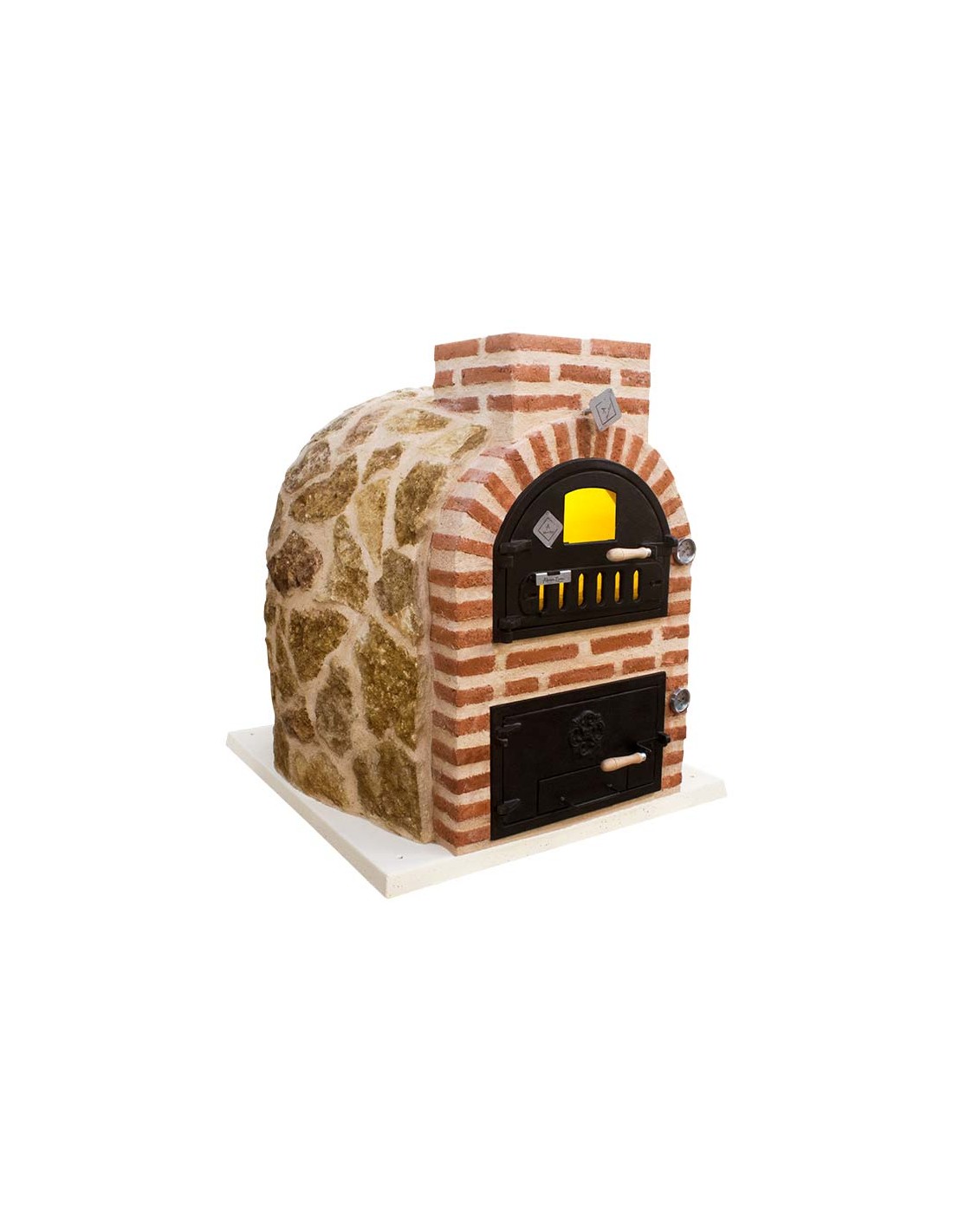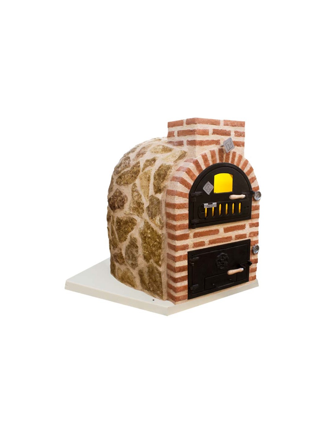 Puede recibir el calor de la hornilla inferior en cuyo caso el horno está siempre limpio sin ceniza, sin humo y sin brasas de forma que se puede utilizar ininterrumpidamente incluso durante días. También se puede calentar como cualquier horno de leña convencional quemando la leña en su interior.