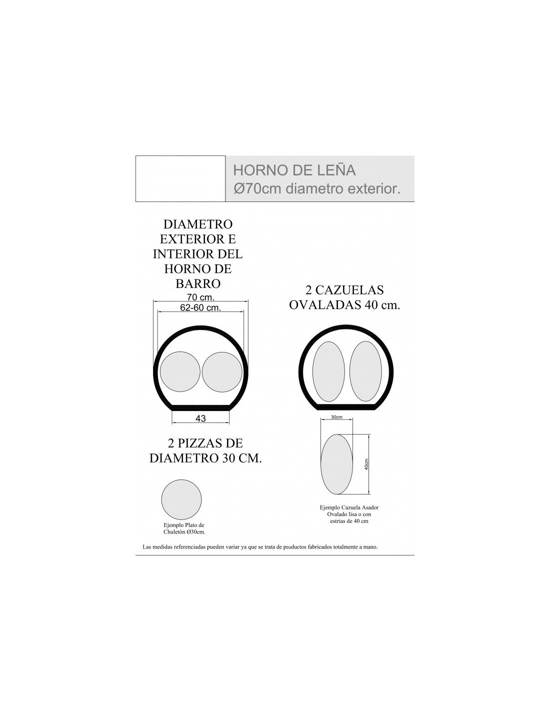 - Horno de barro o cascarón disponible en (cm): 70 - 80 - 90 - 100 - 110 - 120 Las medidas indicadas se corresponden al diámetro exterior