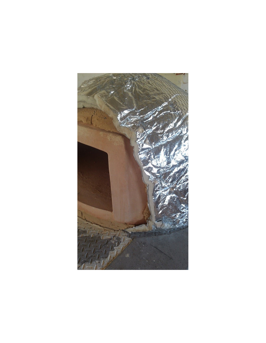 Este aislante se coloca envolviendo completamente el horno, tanto en la base como en todos los laterales que componen la cúpula del horno, quedando solapado entre 30 y 40 cm en la parte superior de la bóveda que es la zona que mas calor acumula.